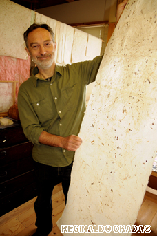 Depois de um ano de pesquisa, ele decidiu viver no Japão para trabalhar com o washi e escolheu a província de Kochi para morar. Desde antigamente até hoje, ela é a maior produtora do país da matéria-prima para a fabricação do papel tradicional, ou seja, das plantas kōzo e mitsumata, das quais se extrai a fibra.